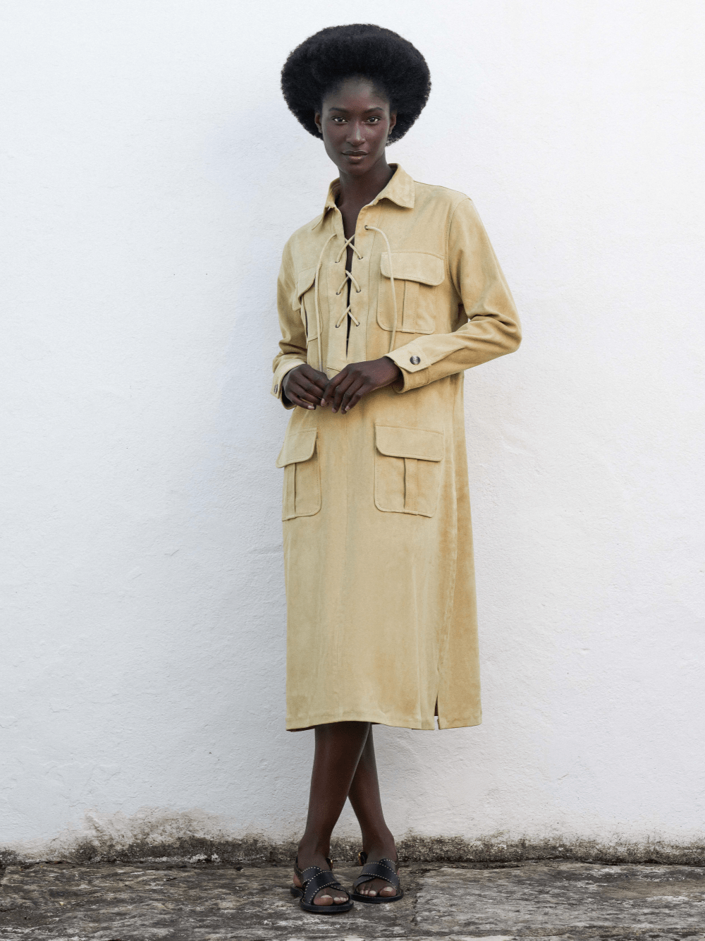 Every piece in this collection embodies the spirit and vision of Paula, from the stunning Cinnabar kaftan-style dress crafted from linen, adorned with unique and colorful elements, to the captivating Shirley dress, which features a gradient of subtle and delicate organic elements.