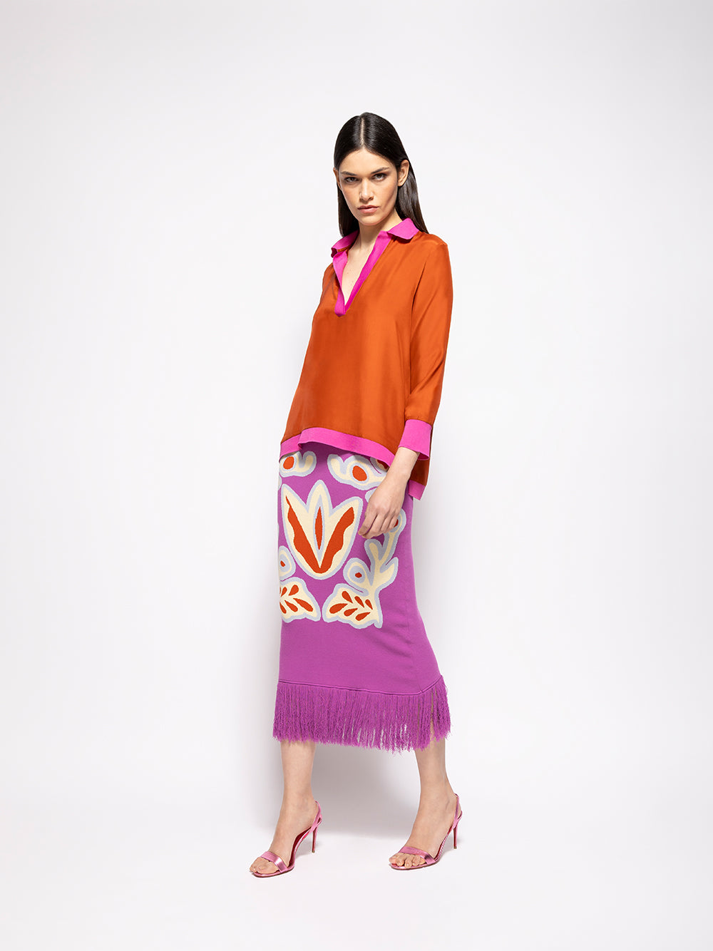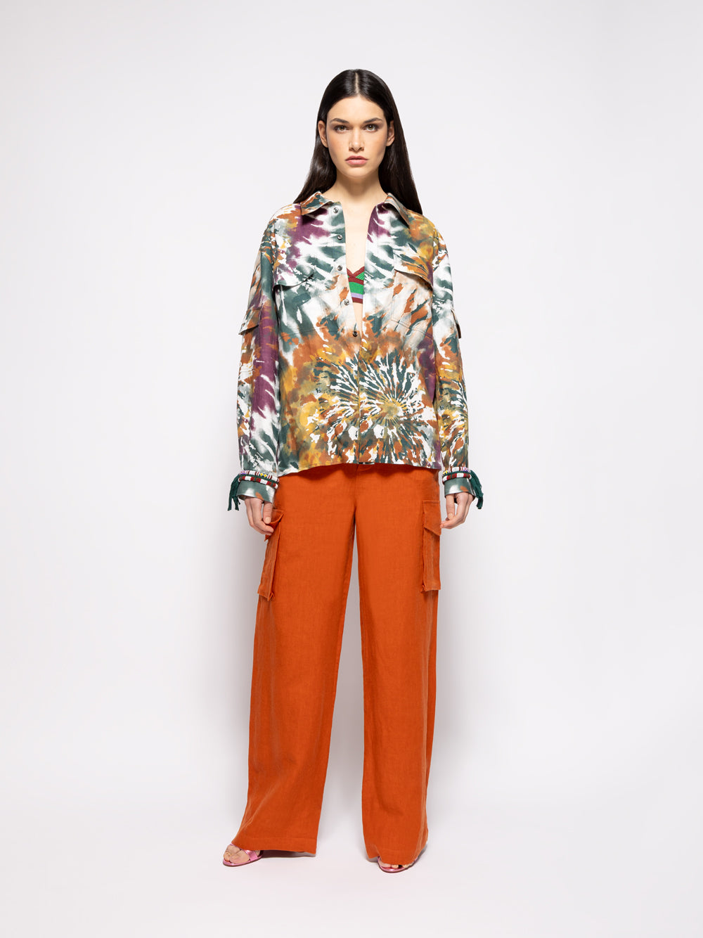 This season, flowing silhouettes and intricate details, signature to PAULA’s identity, take center stage. Iconic best-sellers like the SAPHIRE wool knit are reimagined with fresh finishes, while standout pieces such as the GARDENIA cape and the PAULA linen blazer set new standards for elegance. Innovative techniques, including printed linens, embroidery, and the seamless blend of denim and silk, bring a fresh energy to the collection, creating a polished yet relaxed aesthetic.
